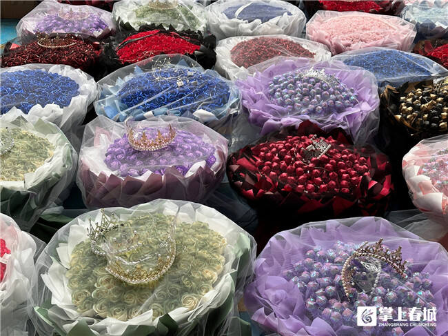 “我们花店2月初就开始接受预订了,光昨天下午就已经接了60多单预订了,今年节日期间的单量还是很可观的。”梦涵花店内,店长王萍茹介绍。