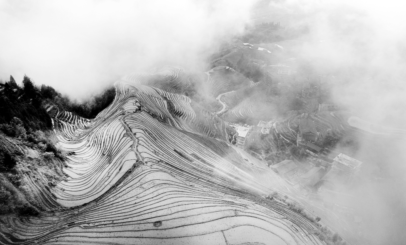 大寨村位于龙脊梯田景区的核心地带,有长达2300多年的梯田耕种历史,村民世代在山坡上开垦水田,形成了气势恢弘的梯田群。