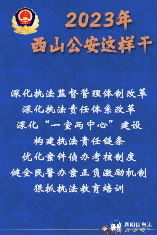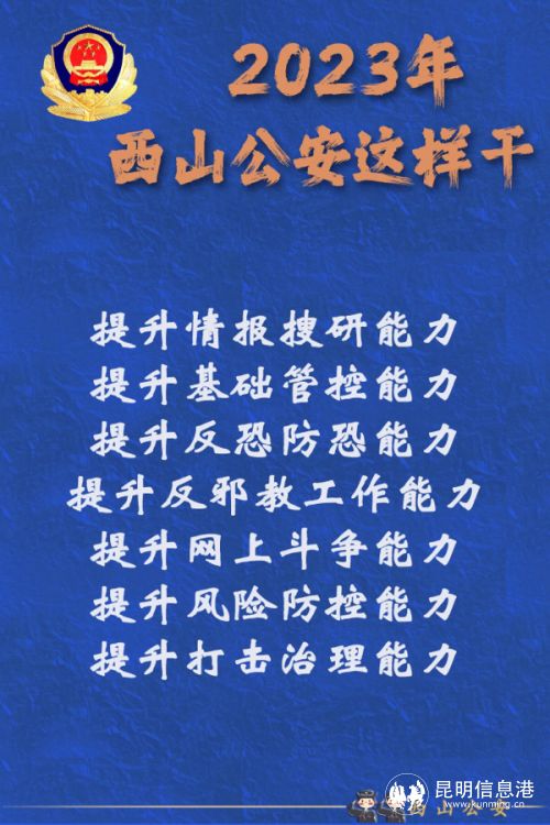 2023年,西山公安将以愚公移山的志气、滴水穿石的毅力和“起步就是冲刺、开局就是决战”的姿态,坚定不移朝着既定目标奋勇前进,为维护国家政治安全、确保社会大局稳定、促进社会公平正义、保障人民安居乐业作出新的更大贡献。(昆明信息港 记者合宇聪 西山警方供图)