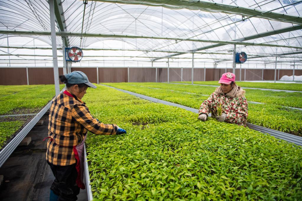 2月8日,在湖南省常德市鼎城区国家现代农业产业园一处蔬菜育苗基地,工作人员在清理蔬菜育苗盘中的杂草。新华每日电讯记者陈思汗摄