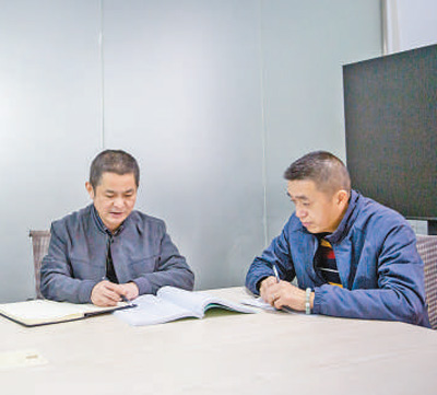 毕志斌(左)与同事商讨招聘事宜。丰代旺摄