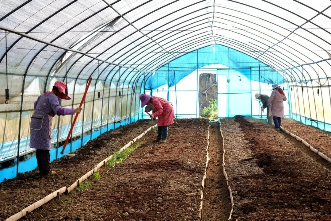 初春,在普洱市宁洱哈尼族彝族自治县德化镇那迁村绿荫塘小组的白及种植基地,一排排温室大棚排列整齐,在阳光的照射下格外夺目。大棚内,不少村民正忙着镶边、翻地、栽苗,现场呈现出一派繁忙景象。