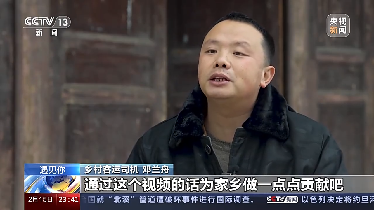 乡村客运司机 邓兰舟:还想把自己家乡的土特产推荐出去,让更多的人能看见,让更多的人能知道。通过这个视频为家乡做一点点贡献。