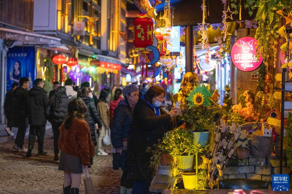 2月15日,游客在宁波老外滩步行街夜集市上挑选饰品。 新华社记者 江汉 摄