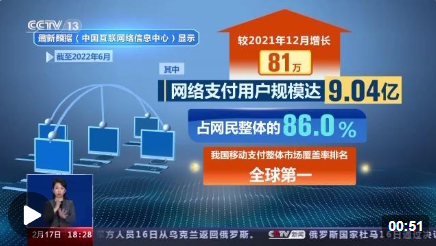 截至去年6月 我国超9亿人使用网络支付