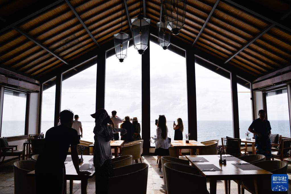 2月13日,在印度尼西亚巴厘岛,中国游客参观一家海边咖啡厅。新华社记者 徐钦 摄
