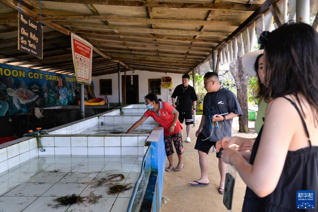 2月13日,在印度尼西亚巴厘岛,中国游客参观一家海龟养殖场。新华社记者 徐钦 摄