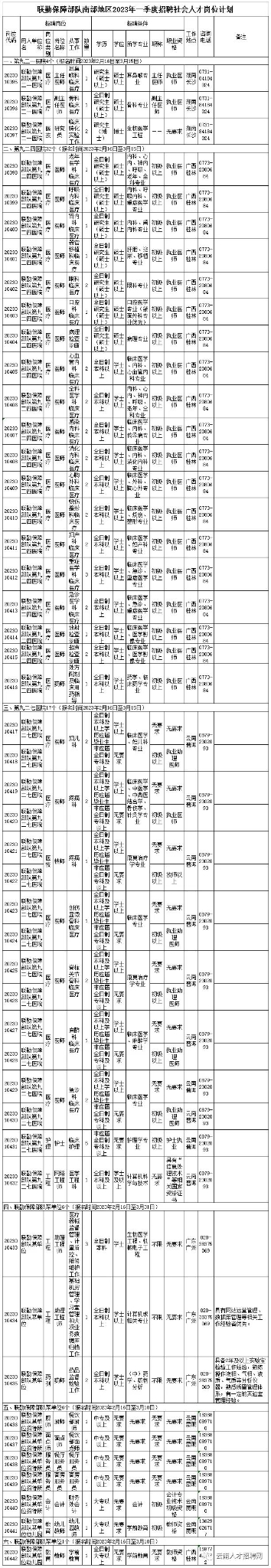 昆明信息港讯 实习记者周妍小丹 近日,记者从云南人才招聘网了解到,联勤保障部队南部地区公布2023年一季度社会人才招聘计划,岗位共计66个,其中,云南地区岗位共15个,计划招聘23人,包括中国人民解放军联勤保障部队第九二七医院17人、联勤保障部队某单位6人。报名时间从2月16日至3月15日。