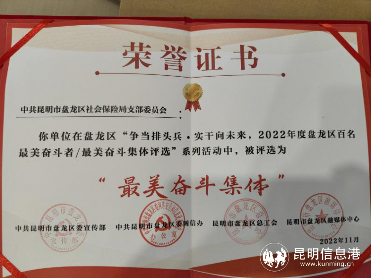 昆明信息港讯 通讯员郝岳 记者曹芸 近日,昆明市盘龙区社会保险局牢固树立社保服务为人民理念,结合实际创建盘龙区五色“康乃馨”社保服务党建品牌,以党建引领不断提升社保公共服务水平。以五色“康乃馨”服务为牵引,持续深入开展社保扩面增效工作,使社保服务事项更加标准化、便捷化和高效化。