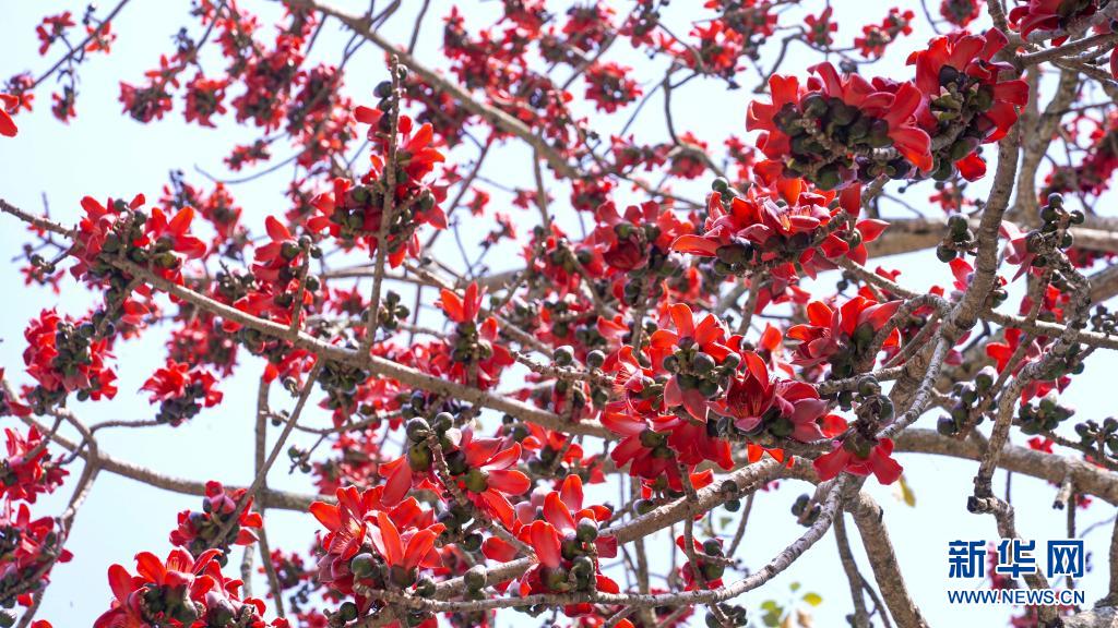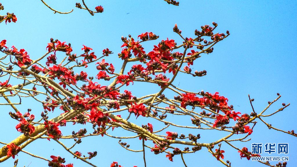 云南屏边木棉花开(摄于2月15日)。新华网发(屏边县融媒体中心供图)