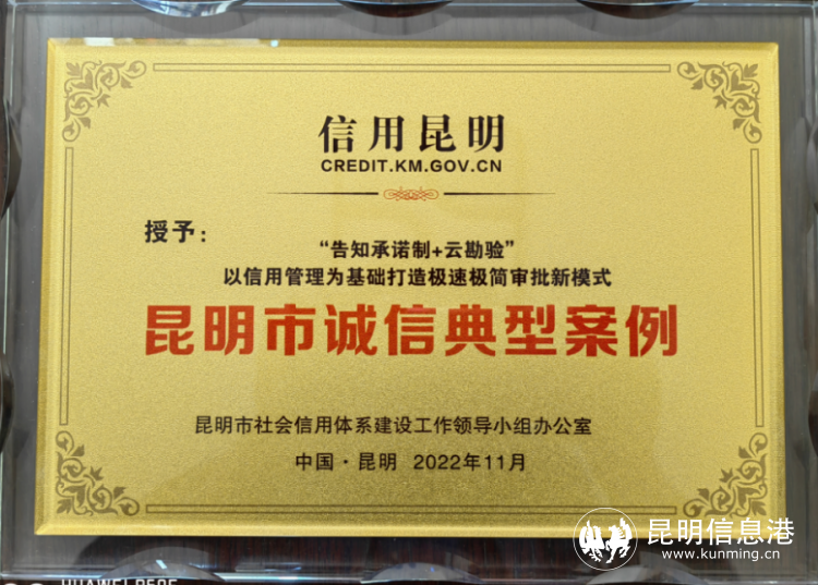 【褒扬诚信典型】官渡人社局“告知承诺制+云勘验”审批模式获评昆明市诚信典型案例