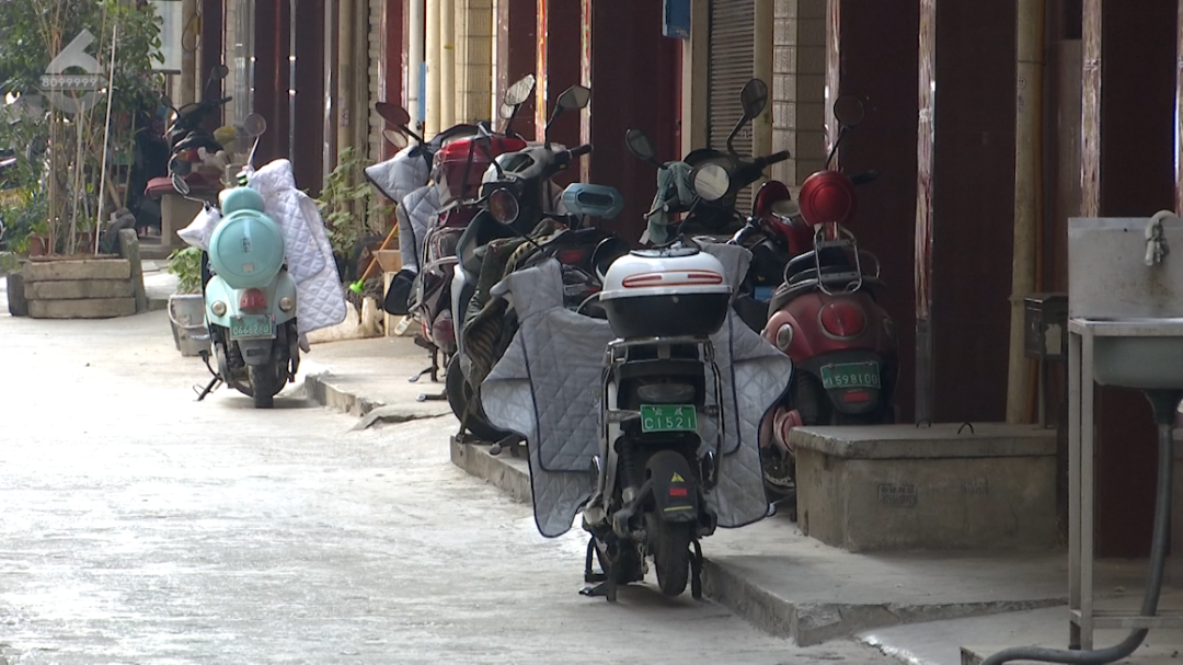 监控显示,当天凌晨四点半左右,一名穿着白色上衣,戴咖啡色帽子的男子,打着电筒走到李女士家楼下的巷子里,这里停着很多电动车。