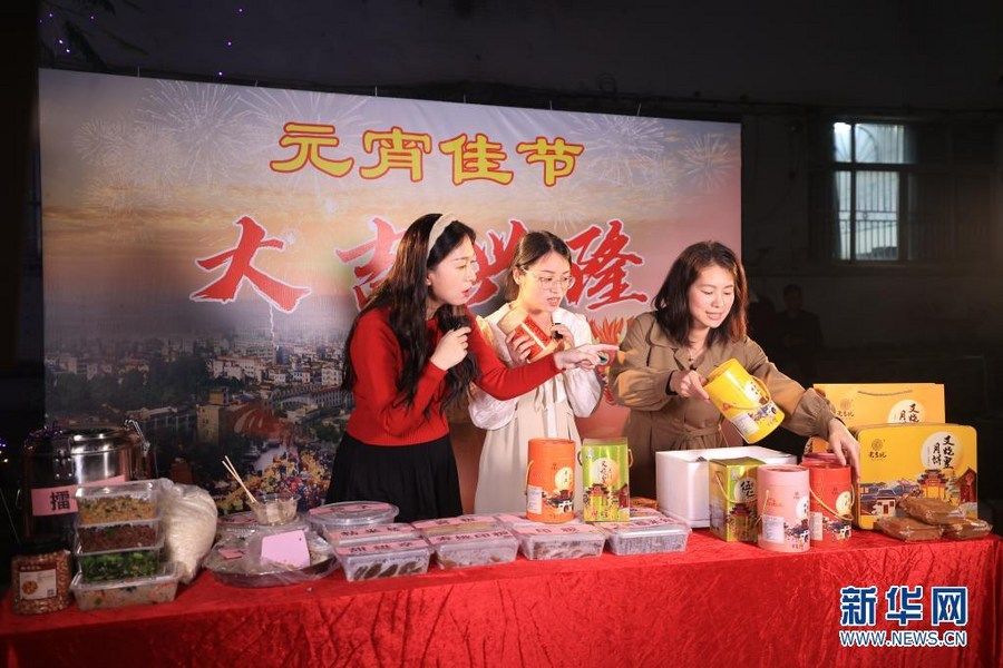 惠州“新农人”元宵节直播销售农产品。新华网发(王建桥 摄)