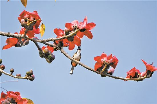 大量花苞挂枝头,二月木棉点点红。2月早春,有市民趁着初春天气晴朗之时,踏进越秀公园、中山纪念堂、烈士陵园等传统的木棉花观赏点,品春日红棉的“头啖汤”。