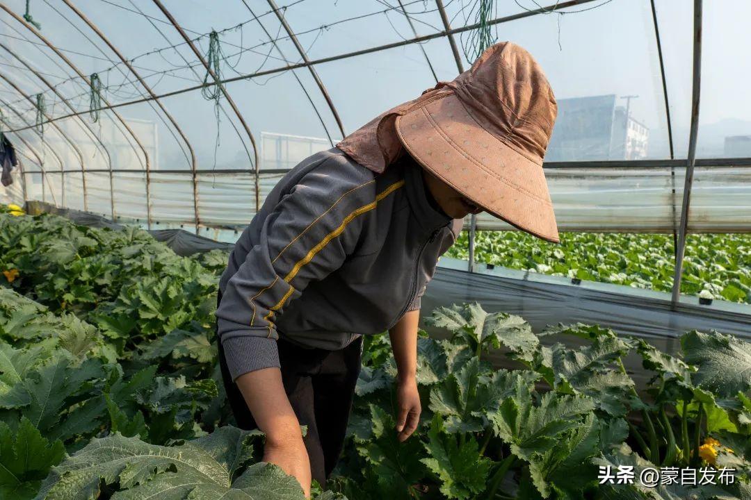 农户在专业农技人员的指导下,正在开展田间养护,保证外贸出口蔬菜的品质。