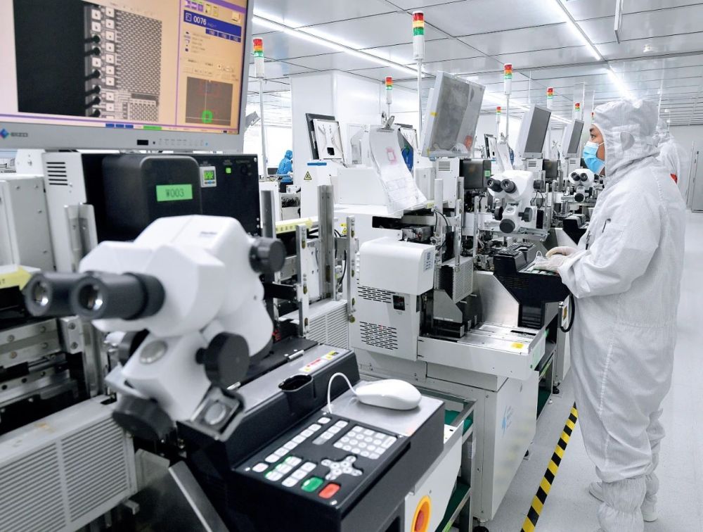 在位于新郑市的郑州电子信息产业园,SIP 芯片研制及高端封测生产基地内的生产车间(2022年9月20日摄)唐强摄