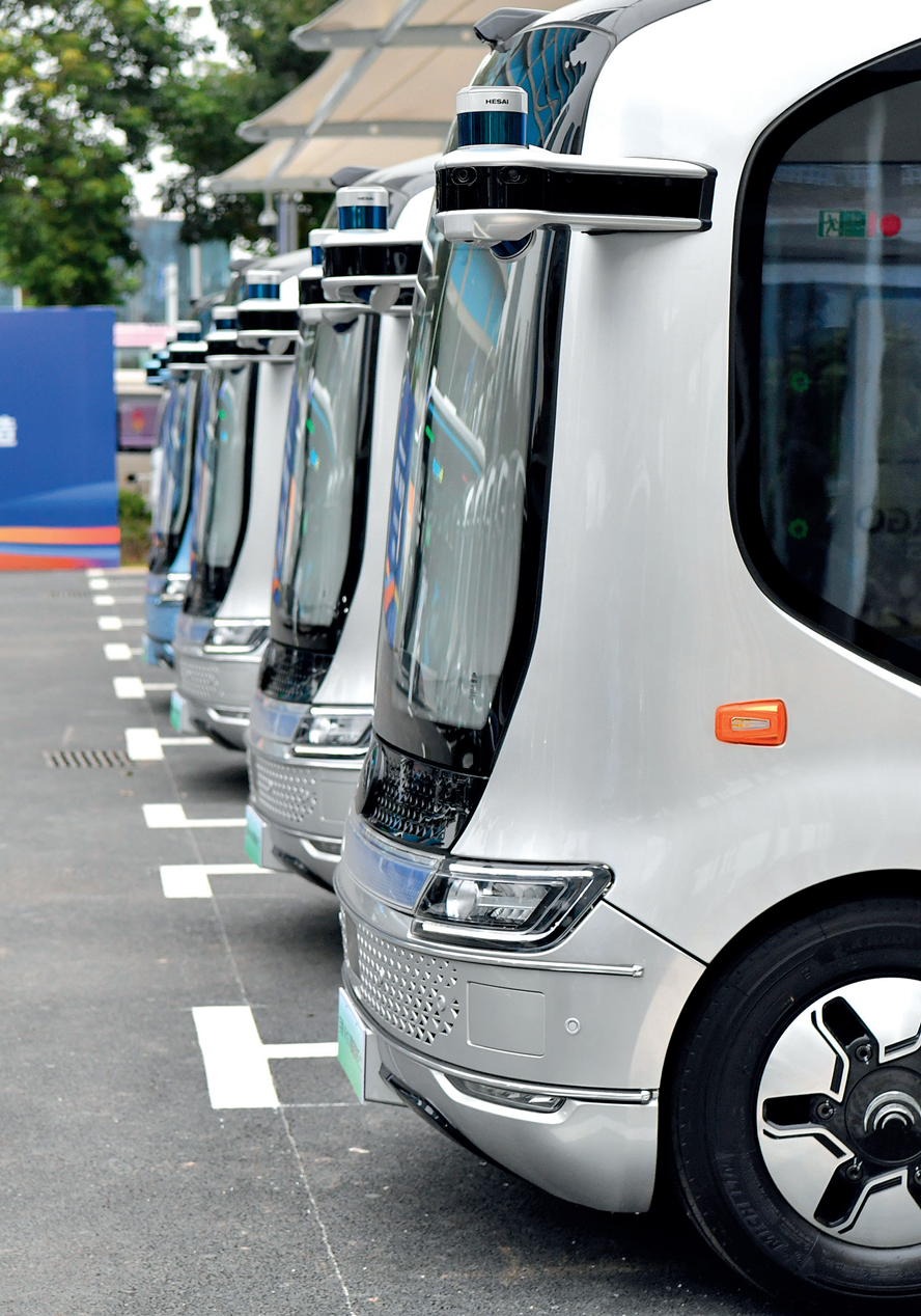 宇通智能巴士在郑州龙子湖智慧岛的公交站内充电(2021年10月19日摄) 李嘉南摄 / 本刊