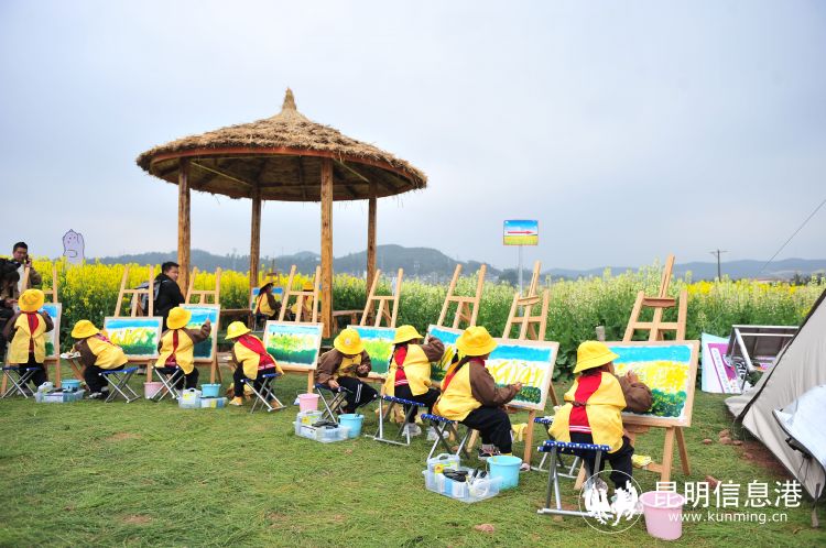 油菜花田间,“田间教学”活动正在上演,老师带领学生以大自然为伴,在油菜花海中作画,引领青少年从学中思、在思中悟、从悟中干,传承农耕文化,关注自然生态。
