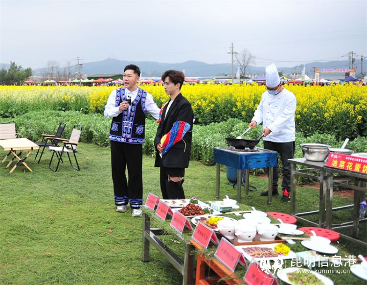 南华是“世界野生菌王国”“中国野生菌美食县”“中国野生菌之乡”“中国核桃之乡”。油菜花田间,品尝一杯黑松露咖啡,满口浓浓咖啡味和黑松露浓烈的香味。南华县本地资深大厨李先生还亲自上阵,精心挑选本地土鸡蛋和油菜花等食材,现场制作美食——油菜花蛋饼。现场还展示了鲍汁羊肚菌、黑松露蛋黄猪舌、羊肚菌烩大排、菌香养生盅、农家凉火腿、刺白花等特色美食,为游客献上一场视觉与味觉的盛宴。
