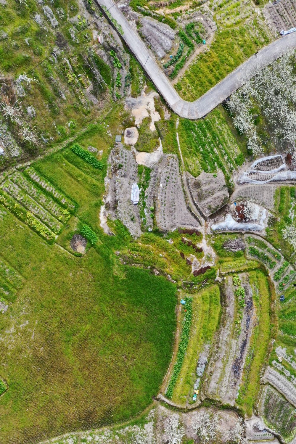 ↑2月24日拍摄的福州市永泰县盖洋乡盖洋村一处田地(无人机照片)。