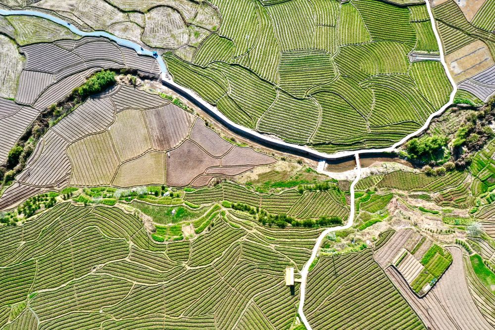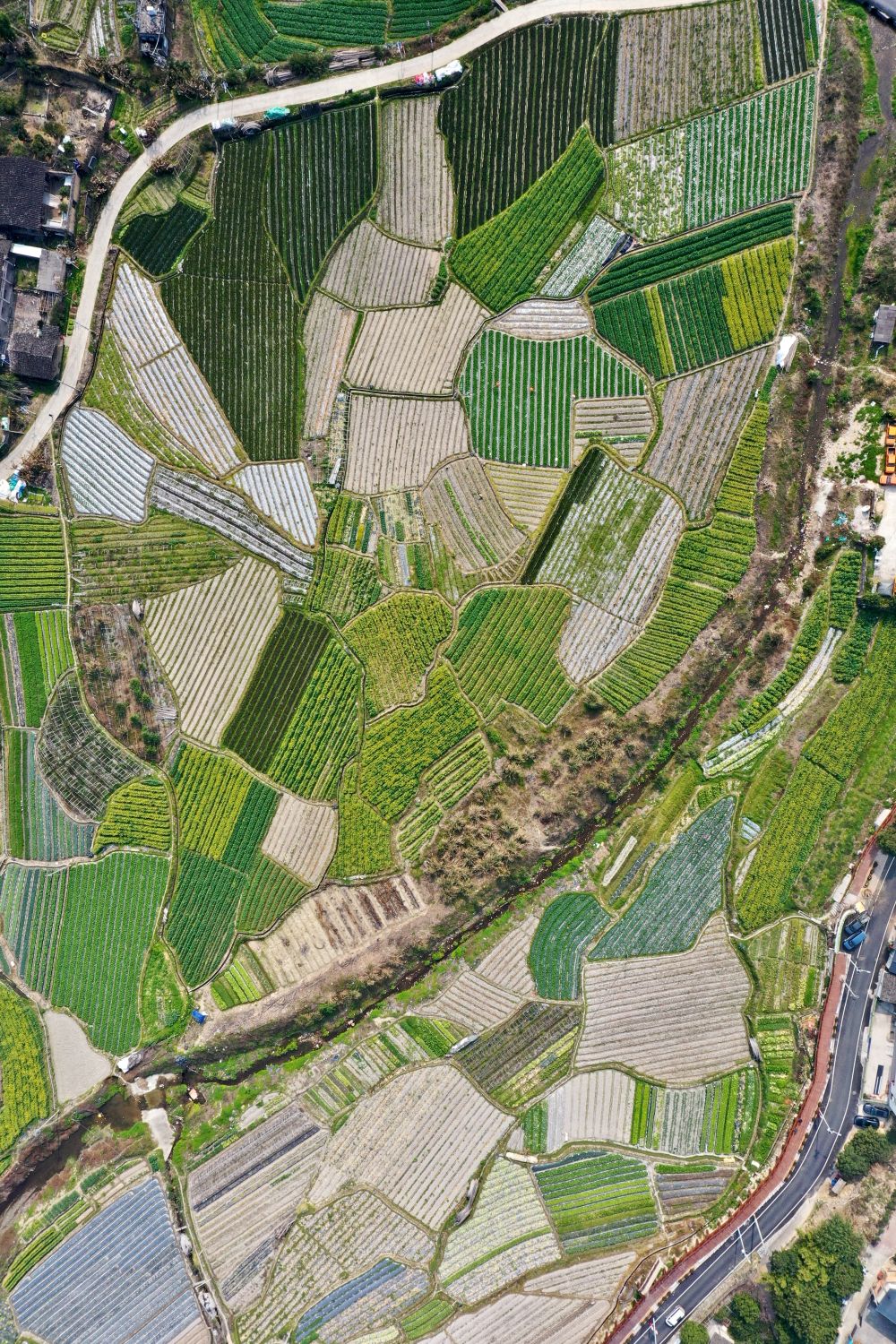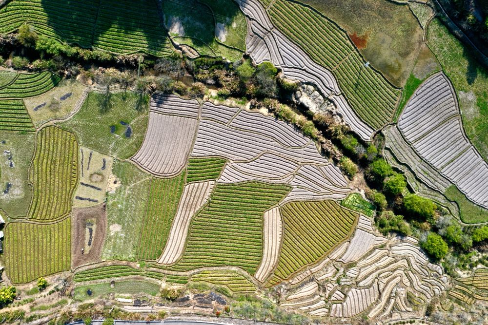 春耕时节,在福建省福州市乡村山岭间,一块块形状各异、五彩斑斓的田地犹如大地上的拼图,呈现别样的春耕画卷。新华社记者 姜克红 摄影报道
