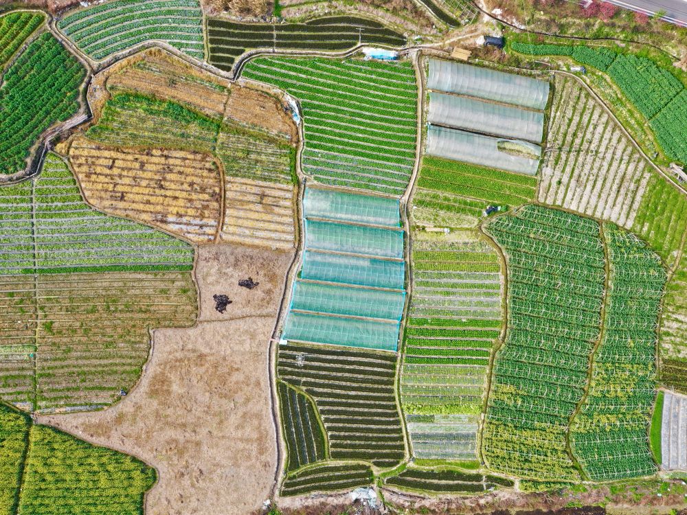 ↑2月25日拍摄的福州市闽侯县荆溪镇蔬菜基地景观(无人机照片)。