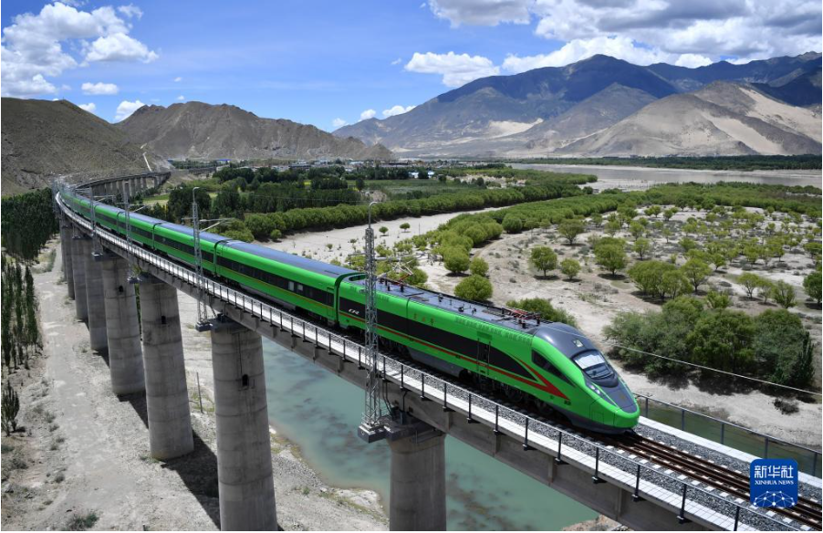 复兴号列车行驶在西藏山南境内(2022年6月22日摄)。新华社记者 觉果 摄