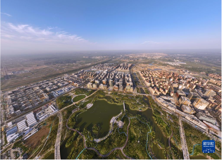 这是清晨时分的雄安新区容东片区(2022年9月8日摄,无人机照片)。新华社记者 邢广利 摄
