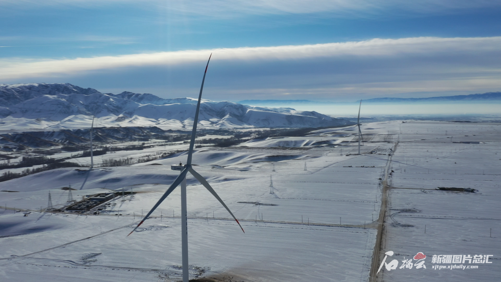 积雪渐融,春意初显。伊犁河谷伊宁县麻扎乡境内的中核伊宁县130兆瓦风力发电项目建设区内,已经安装完成的一座座风力发电塔矗立在蓝天白云下,成为一道夺目的风景。