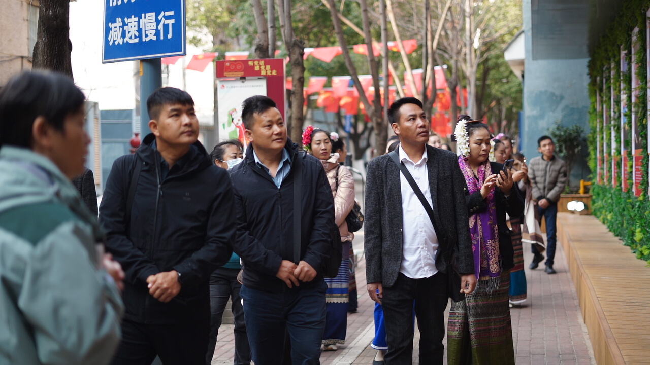 当C386次城际列车抵达元江站,一个个穿着傣族、拉祜族服饰的姑娘、小伙走出车站,他们顿时成为靓丽的风景线,吸引了不少旅客的目光。他们就是磨憨镇曼庄村的村干部,调研组的成员。