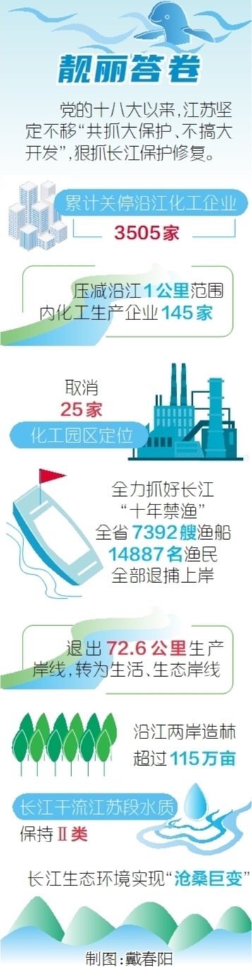 “留一江清水、绘两岸美景”十个字,生动诠释了江苏面对长江大保护迎难而上、开拓创新的前行轨迹。