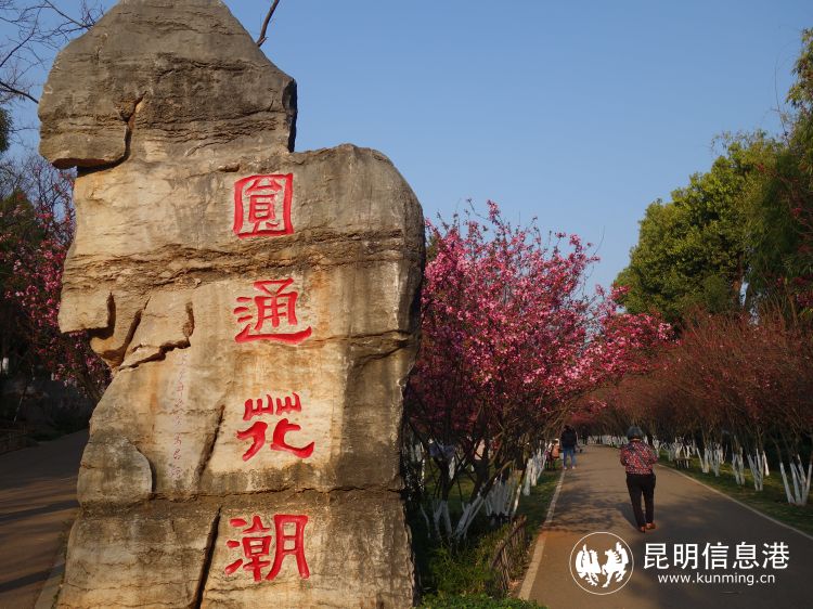 “圆通樱潮”位于昆明动物园中部,景观区南北宽约100米,东西长200余米,是云南省非物质文化遗产,目前园内云南樱花、垂丝海棠数量达1643株。