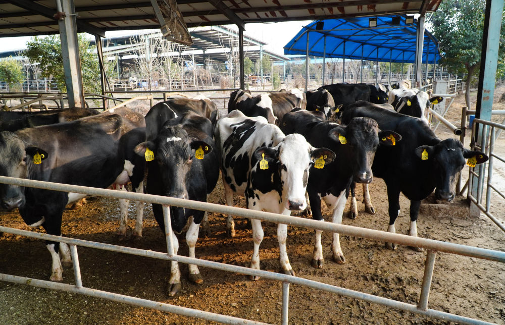 2月20日在山东省曹县五里墩村拍摄的奶牛养殖场。新华社记者 徐速绘 摄