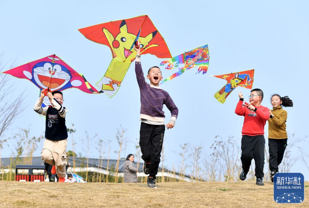 春光明媚,人们踏青出游,放飞风筝,乐享春日美好时光。