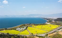 ↑2月27日,旅游专列行进在云南曲靖市罗平县的油菜花海中(无人机照片)。新华社发(毛虹摄)