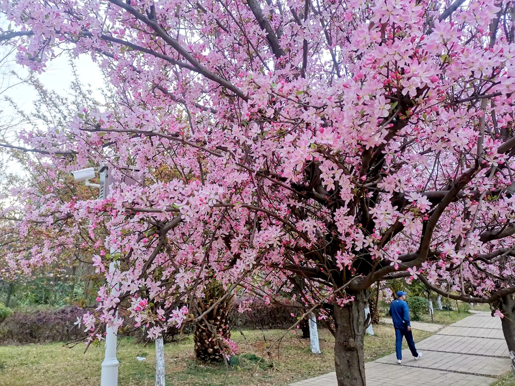 正是海棠盛开季,在美奂公园,海棠花开美景如画,海棠花廊唯美浪漫,成为时下热门的“打卡地”。不少市民群众在园内一边散步,一边欣赏着这片浪漫的春色。