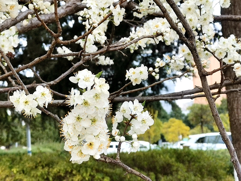 每年立春以后,美奂公园内草木争春、繁花似锦,粉色、紫色、白色、黄色等各色花种竞相绽放,姹紫嫣红、五彩斑斓。此时踏入公园,双眼应接不暇。除海棠花外,一株株玉兰花和紫叶李也格外引人注目,密密麻麻的白色、紫色小花挂满了枝干,热烈而鲜艳。经过几年的精心管养,园内的花草树木逐渐适应生长环境,渐成规模。有的含苞待放、有的凌跃枝头、有的花开烂漫……