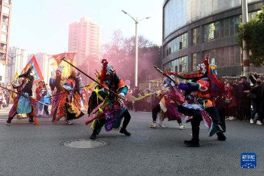 ↑ 2月1日拍摄的花江峡谷大桥施工现场。