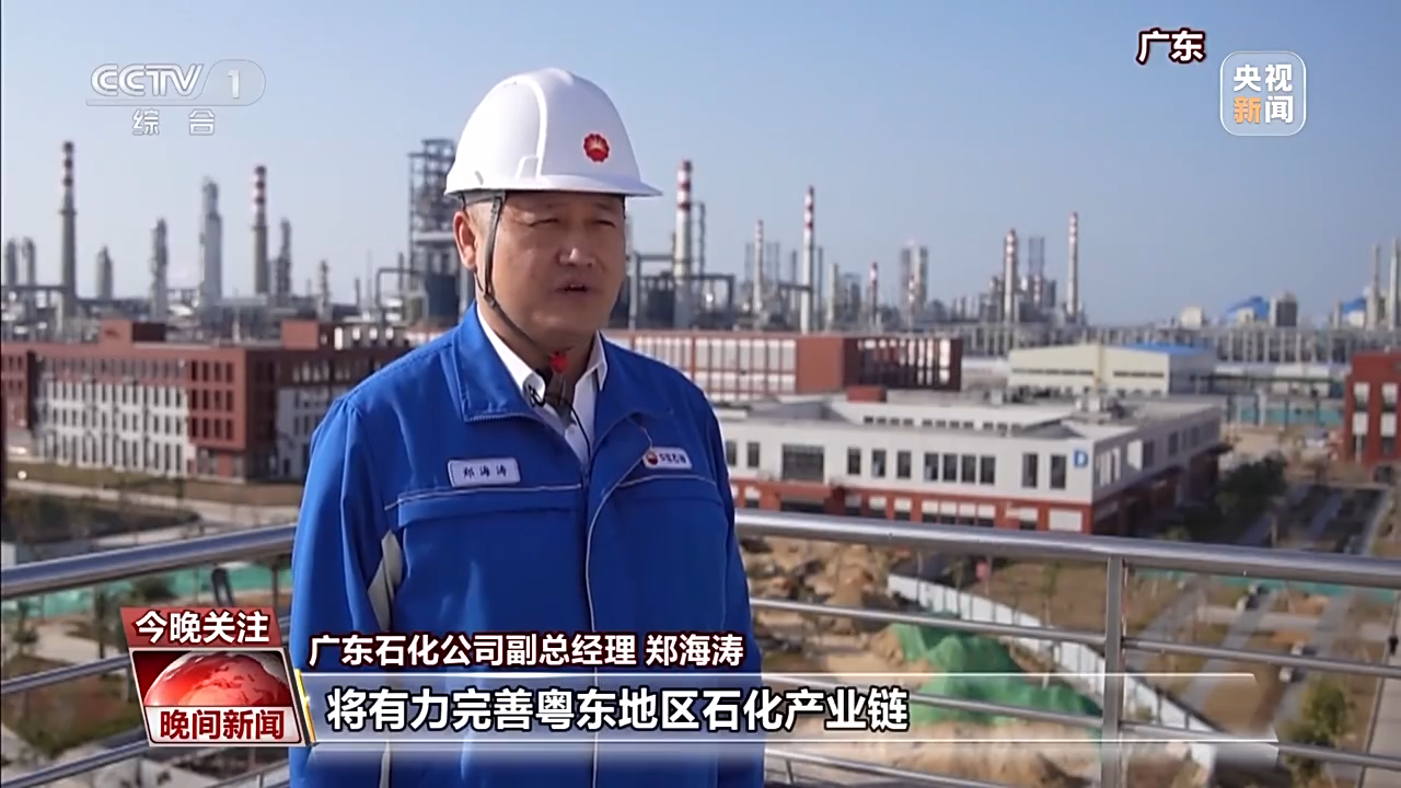 广东石化公司副总经理 郑海涛:项目投产后,将有利完善粤东地区石化产业链,推动国内炼化业务向产业链和价值链中高端迈进。