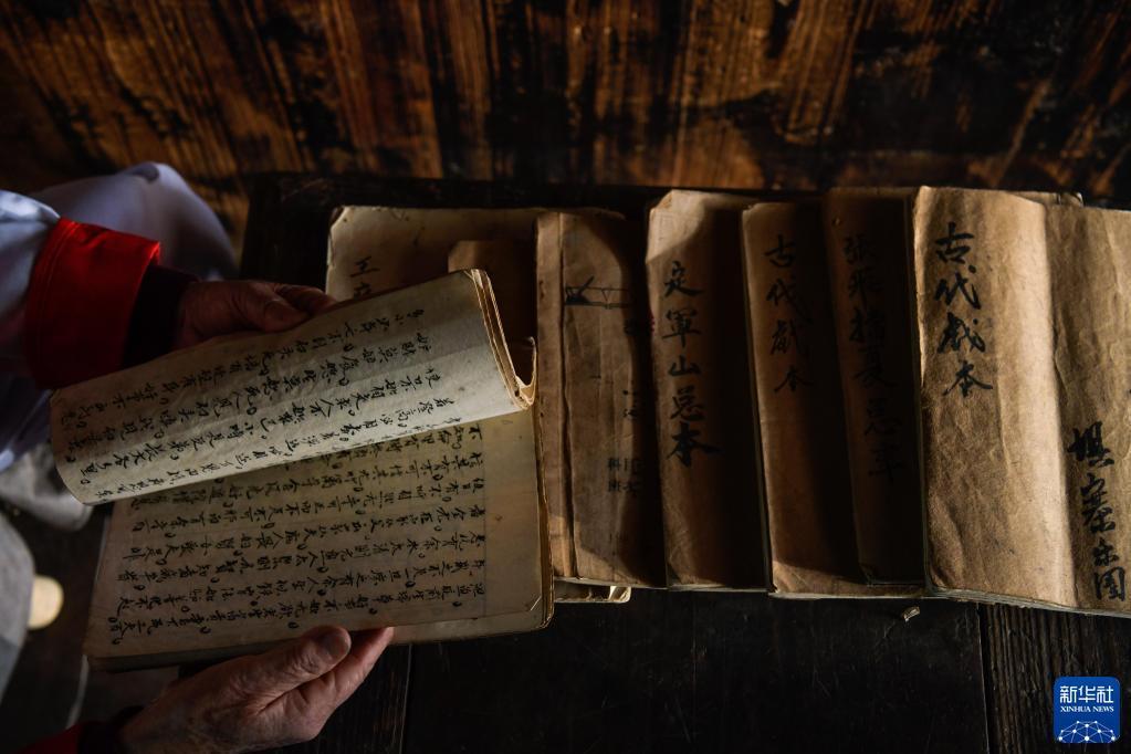 这是2月26日在贵州省天柱县凤城街道拍摄的侗戏古戏本。