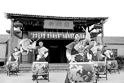 山东峄城文艺志愿者表演非遗项目“龙鼓”,助力乡村文旅发展。孙慧摄/光明图片