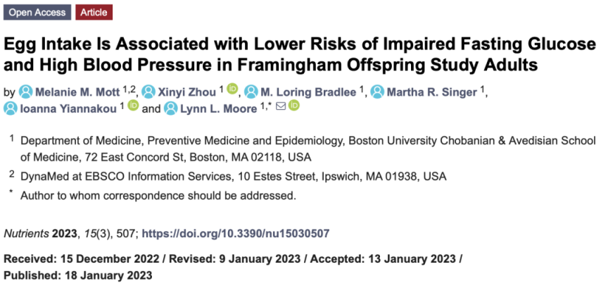 2023年1月18日,美国波士顿大学研究团队在《营养素(Nutrients)》上最新发表的研究显示,每周摄入≥5个鸡蛋,患2型糖尿病和高血压的风险分别显著降低28%和32%!如果能配合其他的健康饮食模式,对健康的益处会更强。[1]