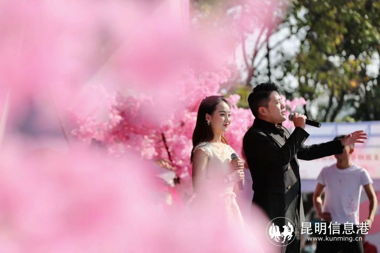 在云南特色戏曲荟萃《古滇新韵》的悠悠唱腔中,昆明动物园第二十三届樱花节暨第八届“圆通樱潮”非物质文化遗产展正式拉开帷幕。唱、念、做、打,伴随着戏曲演员精彩的表演,前来赏樱的市民游客纷纷聚集于开幕式舞台周围观看开幕演出。
