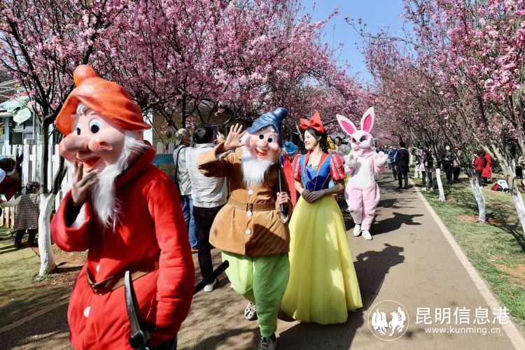 昆明动物园自2000年举办第一届樱花节以来,迄今已经连续举办22年。昆明市园林绿化局相关负责人介绍道:“‘圆通樱潮’早已成为昆明旅游一张亮丽的名片,并于2017年正式列入云南非物质文化遗产保护名录,成为昆明极具代表性的赏花品牌。”在昆明角色家族——碧鸡奶奶、金马爷爷、小石头、花仙子的带领下,到场的领导、嘉宾共同按下启幕按钮,宣告本届樱花节正式开幕。