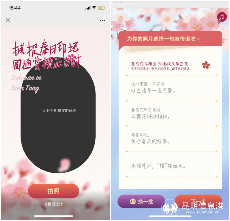 昆明信息港讯 记者李欣怡 阳春三月,正是赏花好时节。昆明动物园第二十三届樱花节暨第八届“圆通樱潮”非物质文化遗产展于3月1日开幕,活动期间同步上线“圆通樱潮”互动小程序,市民游客可上传樱花照片,生成专属海报,共同分享这份独属于昆明的春日仪式感。