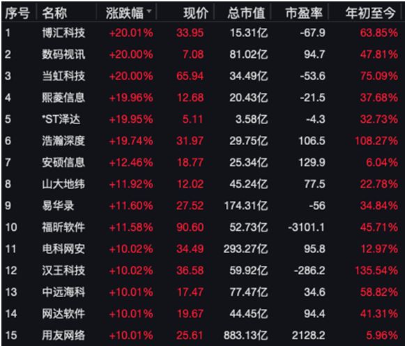 3月1日,信创、大数据、云计算、国资云、ChatGPT等细分领域全线大涨,博汇科技、当虹科技、熙菱信息(300588)20cm涨停,中国联通、中通国脉(603559)、汉王科技(002362)、浪潮信息(000977)、用友网络(600588)、电科网安(002268)等十余只成份股涨停。