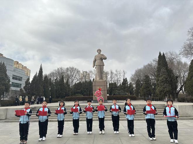 沈阳市浑南区第二小学组织二年级同学走进抚顺雷锋纪念馆,在雷锋像前诵读《雷锋日记》。沈阳市浑南区第二小学供图