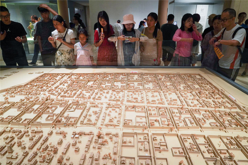 2019年8月16日,游客在南京博物院参观“扬州唐城”模型。李博摄/本刊