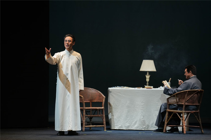 原创革命题材昆剧《瞿秋白》在江苏省淮安市金湖县上演,演员在舞台上进行表演(2022年9月3日摄)李博摄/本刊