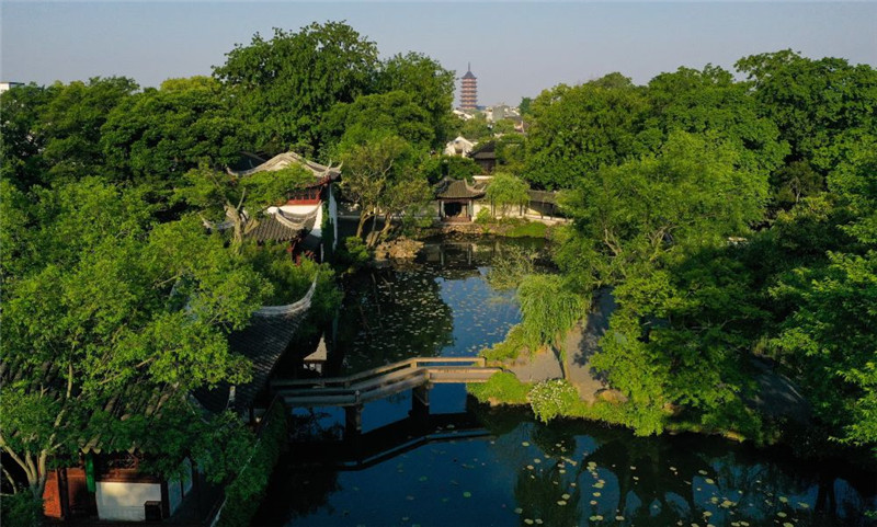 这是无人机拍摄的苏州拙政园景色(2019年5月9日摄)。季春鹏摄/本刊